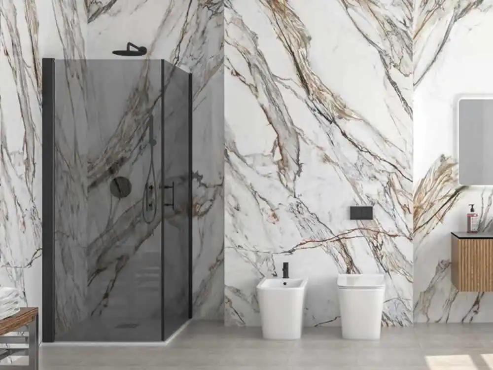 Ορθογώνια καμπίνα ντουζιέρας με Διαφανές κρύσταλλο ασφαλείας S28 REC FU Black Matt 80x75cm με 2 Ανοιγόμενες Πόρτες. Κατάλληλη για χτιστές ντουζιέρες.