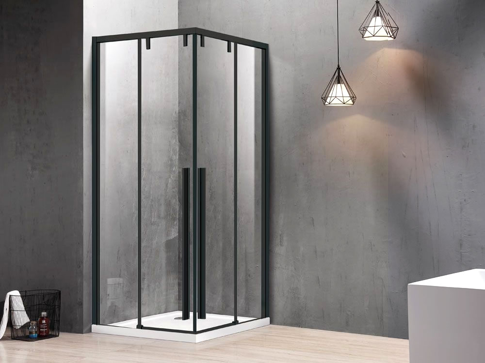 Ορθογώνια καμπίνα ντουζιέρας με Διαφανές κρύσταλλο ασφαλείας Santorini 100 REC 90 x 100 cm Black Matt με 2 Συρόμενα και 2 Σταθερά φύλλα.