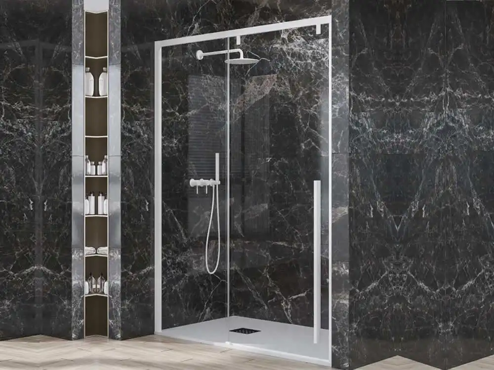 Καμπίνα ντουζιέρας από Τοίχο σε Τοίχο με Διαφανές Κρύσταλλο ασφαλείας Santorini 400 CL White Matt 130cm. Με 1 Συρόμενο και 1 Σταθερό φύλλο.