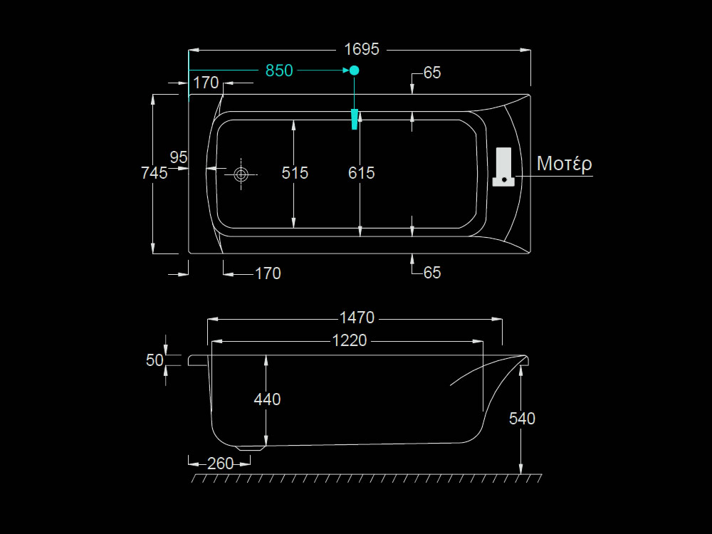 - Στην περίπτωση που επιλέξετε Σύστημα Υδρομασάζ, η μπανιέρα προσφέρεται με πλαίσιο ολικής στήριξης