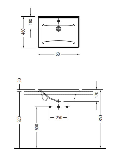 Επιτραπέζιος νιπτήρας μπάνιου από Υαλώδη πορσελάνη Slim 80 3001-300 60 x 46 cm.