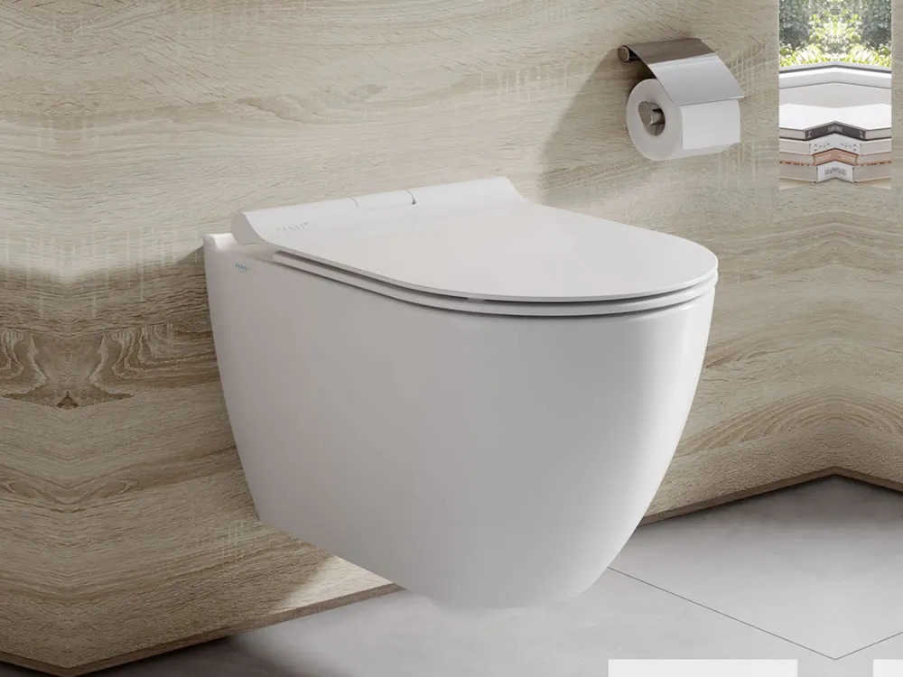 Κρεμαστή λεκάνη WC Serel Smart Rimless 52cm από Υαλώδη πορσελάνη. Αντιβακτηριακή προστασία με ενσωμάτωση ιόντων Αργύρου στο σώμα της.