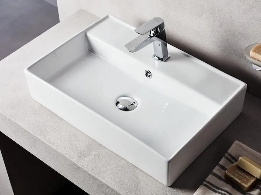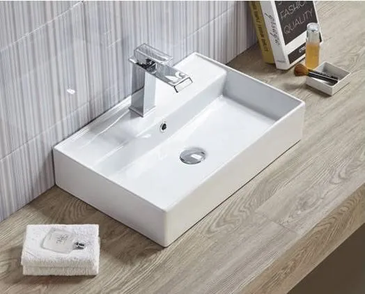 Επιτραπέζιος νιπτήρας μπάνιου STR-50 50 x 35 cm White με υπερχείλιση. Συνδυάζεται με Επικαθήμενη μπαταρία Νιπτήρα.