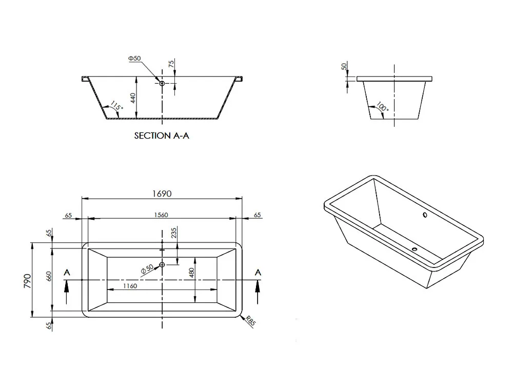 Μπανιέρα ευθύγραμμη Style 170 x 80 cm. Κατασκευασμένη από Ακρυλικό φύλλο Asterite Lucite διατίθεται και με σύστημα Υδρομασάζ.