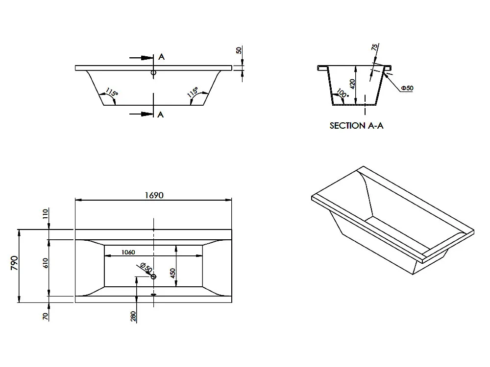 Μπανιέρα ευθύγραμμη Sunshine Velour Matt 170 x 80 cm. Κατασκευασμένη από Ακρυλικό φύλλο Asterite Lucite διατίθεται και με σύστημα Υδρομασάζ.