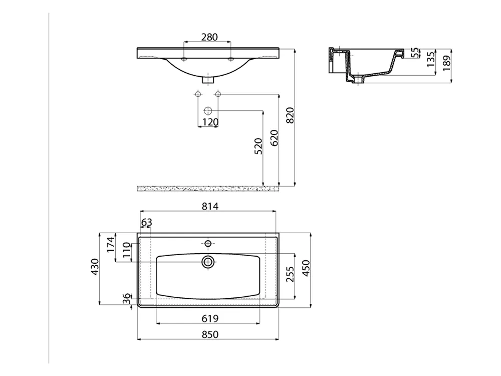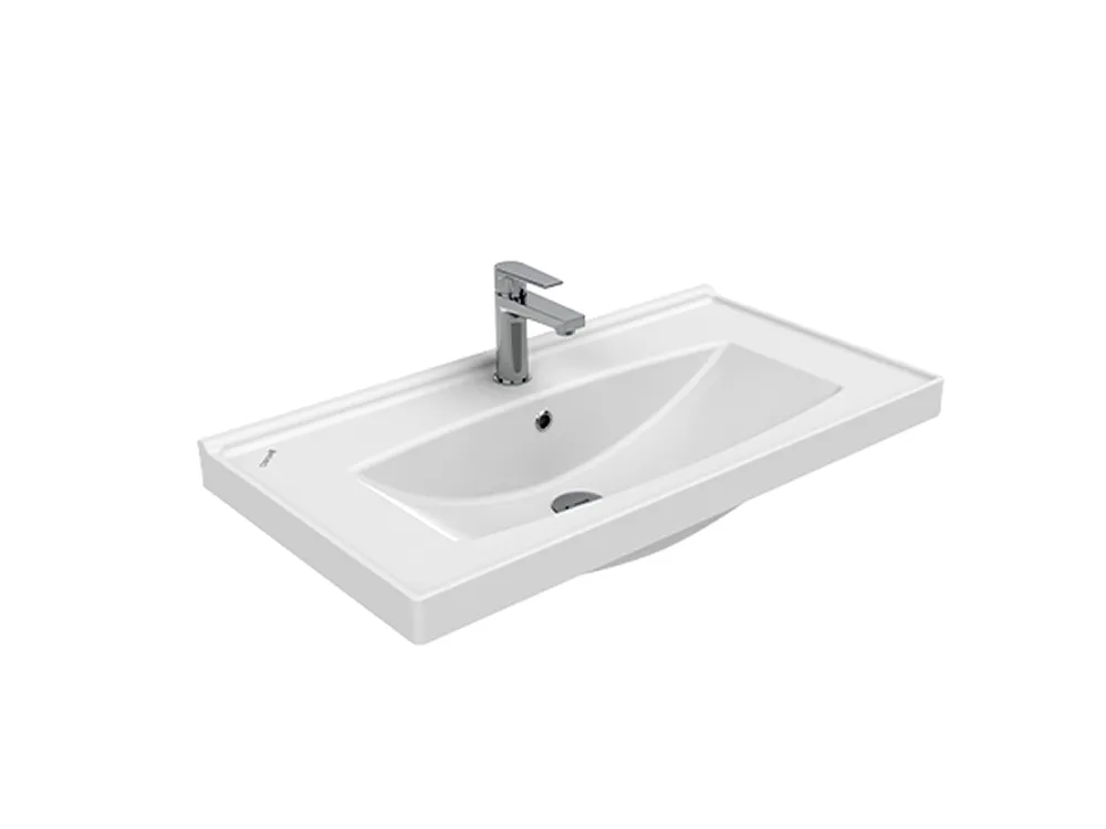 Επικαθήμενος νιπτήρας επίπλων μπάνιου Superior 85 x 45 cm White με υπερχείλιση. Συνδυάζεται με Επικαθήμενη μπαταρία Νιπτήρα.