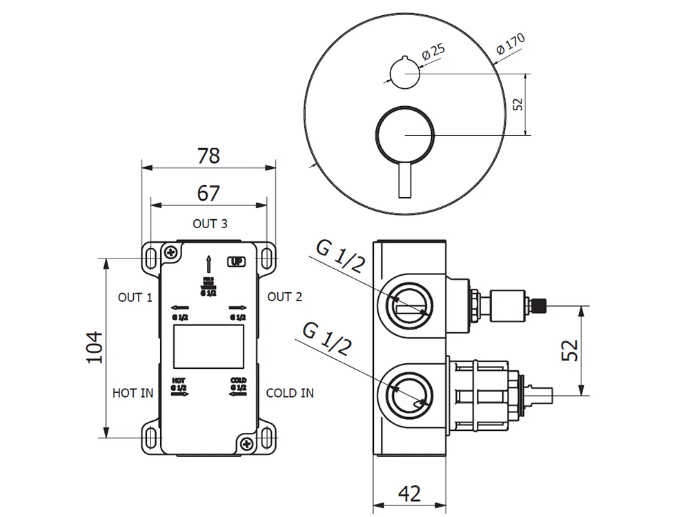 Μίκτης εντοιχισμένου συστήματος ντουζιέρας 3 Εξόδων Teorema 176019 MB Black Matt.