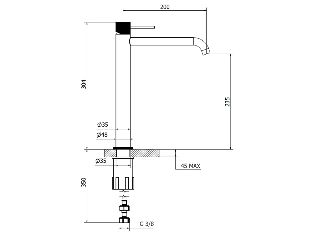 Επιτραπέζια Μπαταρία Teorema Lab Copper 233411. Τοποθέτηση στον Πάγκο. Κατάλληλη για επιτραπέζιους Νιπτήρες, διατίθεται με βαλβίδα Pop-Up.