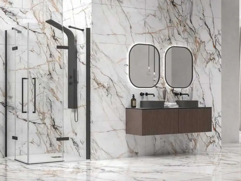 Ορθογώνια καμπίνα ντουζιέρας με Διαφανές Κρύσταλλο ασφαλείας Tinos-200 CL Black Matt 100x90cm με 2 Ανοιγόμενες πόρτες και είσοδο από την διαγώνιο.