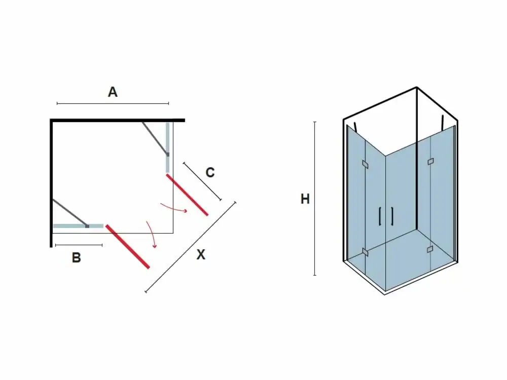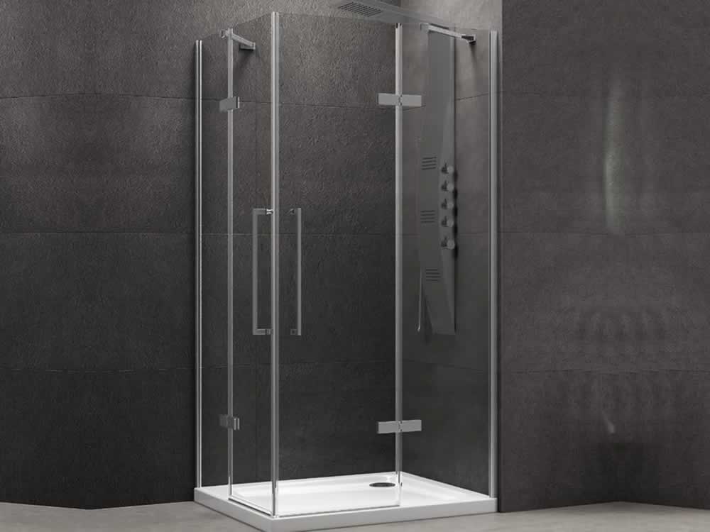 Ορθογώνια καμπίνα ντουζιέρας με Διαφανές κρύσταλλο ασφαλείας Tinos 100 CL Inox Brushed 110x100cm με 2 ανοιγόμενες πόρτες.