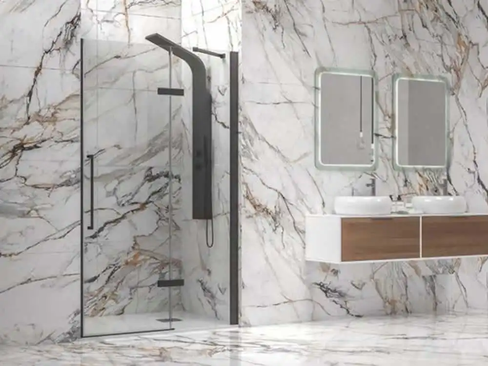 Καμπίνα ντουζιέρας από Τοίχο σε Τοίχο με Διαφανές Κρύσταλλο ασφαλείας Tinos CL-400 Black Matt 70 cm. Με 1 Ανοιγόμενη πόρτα και 1 σταθερό φύλλο.