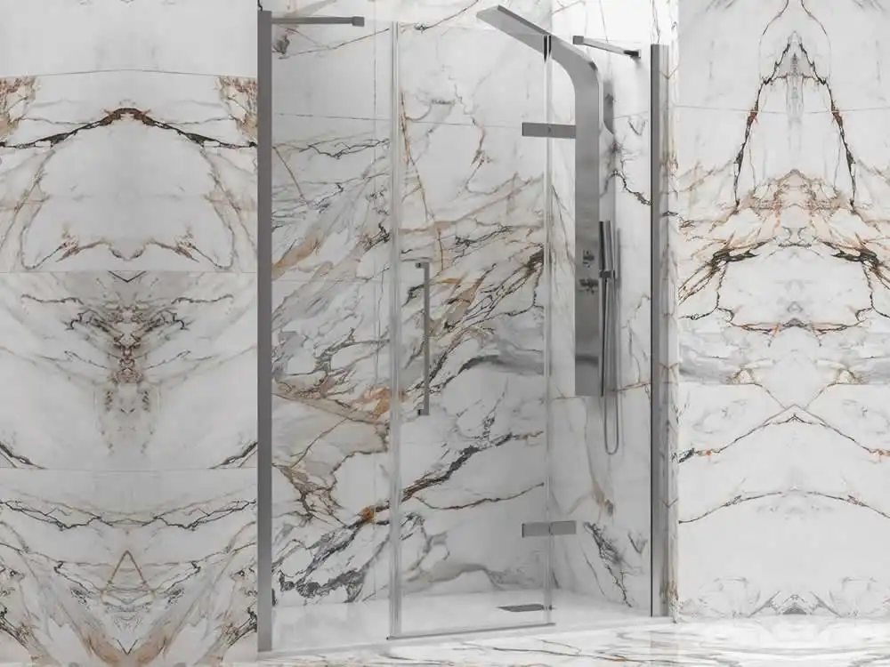 Καμπίνα ντουζιέρας από Τοίχο σε Τοίχο με Διαφανές Κρύσταλλο ασφαλείας Tinos CL-600 Inox Brushed 160cm. Με 1 Ανοιγόμενη πόρτα και 2 σταθερά φύλλα.