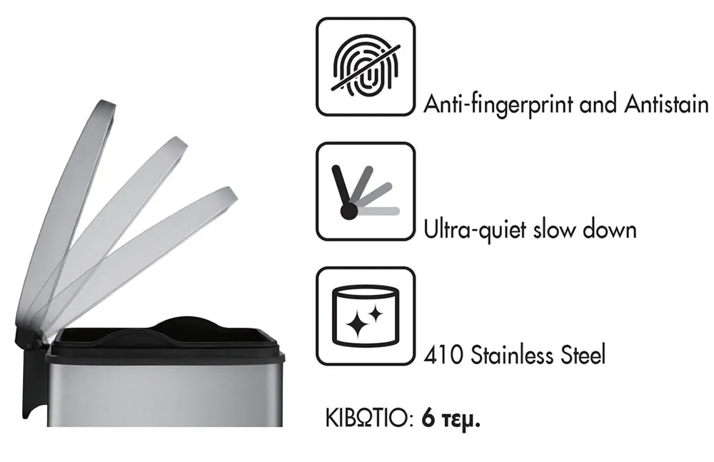 Μεταλλικό χαρτοδοχείο μπάνιου με επιδαπέδια τοποθέτηση V8 Black Matt με χωρητικότητα 8 Lit και Κάλυμμα Soft Close.