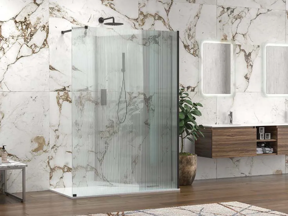 Διαχωριστικό ντουζιέρας με κρύσταλλο Fluted ασφαλείας Walkin W4 Black Matt 140 x 80 cm. Προσαρμόζεται σε χτιστές η έτοιμες ντουζιέρες.