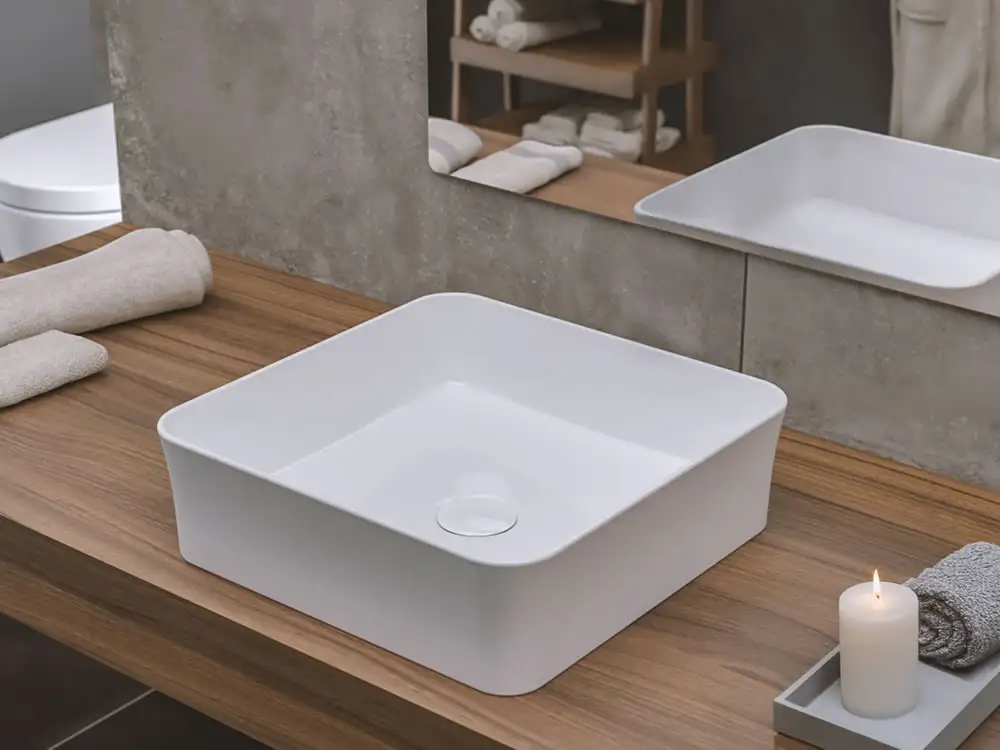 Επιτραπέζιος νιπτήρας μπάνιου York 34770-300. Χωρίς υπερχείλιση κατασκευασμένος από Υαλώδη πορσελάνη. Κατάλληλος για τοποθέτηση σε πάγκους.